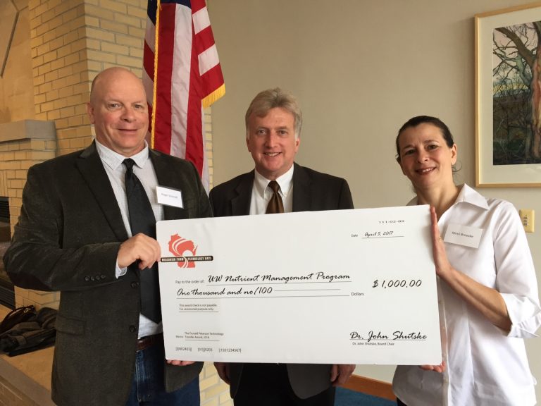 The IPM and NPM exhibit, which provided information about free smartphone apps developed for agriculture by these two programs, received the 2016 Donald R. Peterson Technology Transfer Award. Individuals recognized for their efforts with this display were Roger Schmidt, UW-Extension computer specialist at UW-Madison and Mimi Broeske, UW-Madison senior editor.